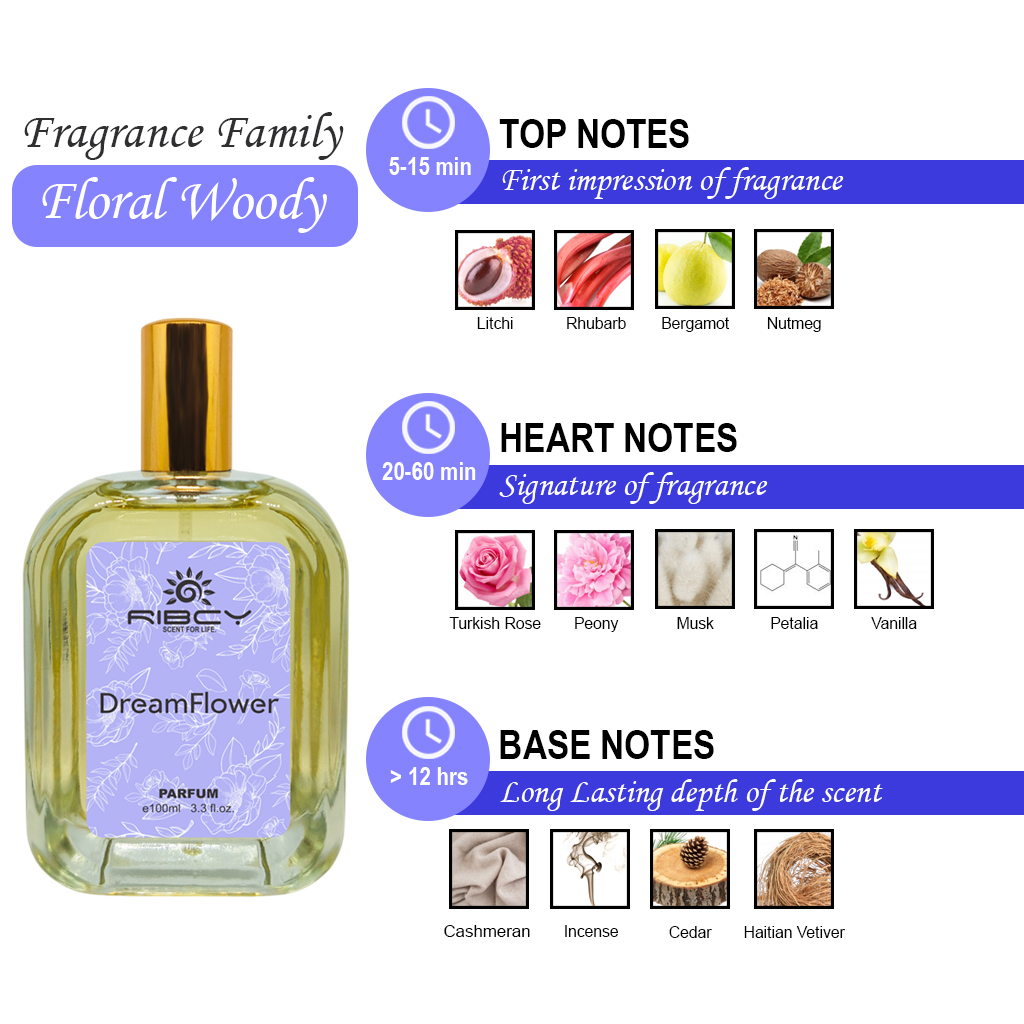 As the fragrance settles, the sophisticated base notes of rich Cashmeran, deep Vetiver, and comforting White Musk emerge, providing incredible depth and remarkable, long-lasting sillage. The creamy, musky dry-down ensures that ribcy Dream Flower remains a presence throughout the day, drawing compliments and turning heads wherever you go. Indulge in this must-have, long-lasting floral perfume and make it your elegant signature scent for all seasons.