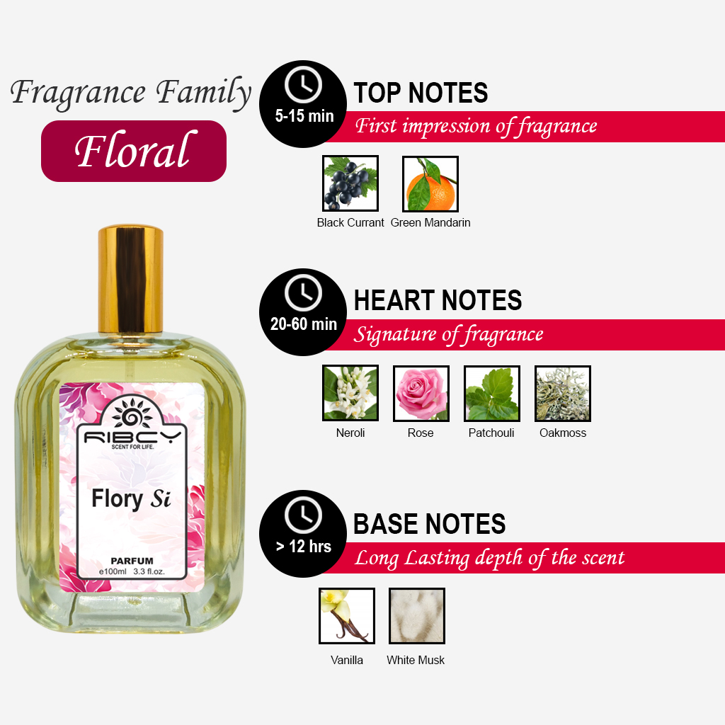 Experience the allure of ‘Flory Si, by RIBCY as it envelops you in a veil of sensual warmth, courtesy of its base notes of patchouli and musk. Whether you’re stepping into a boardroom meeting or heading out for a romantic evening, this luxurious perfume is your perfect accessory, exuding confidence and charm. Let the enchanting fragrance of ‘Flory Si, become your signature scent, a reflection of your unique style and sophistication that leaves a lasting impression wherever you go.